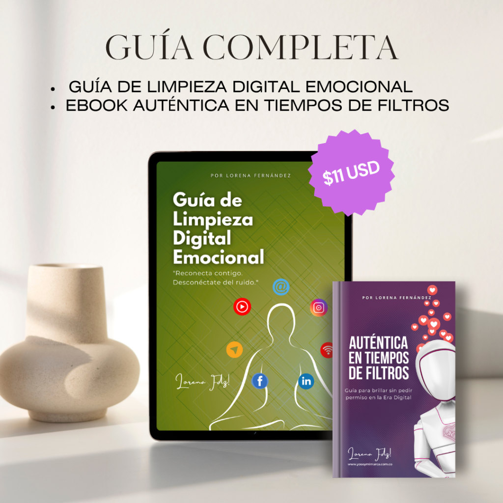 Este pack incluye: la Guía de Limpieza Digital Emocional y el Libro «Auténtica en Tiempos de Filtros». Juntos, son la combinación perfecta para que te sientas fuerte, segura y en control de tu vida, tanto dentro como fuera de la pantalla.